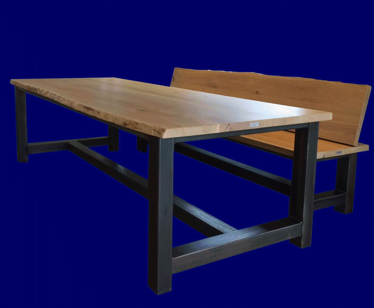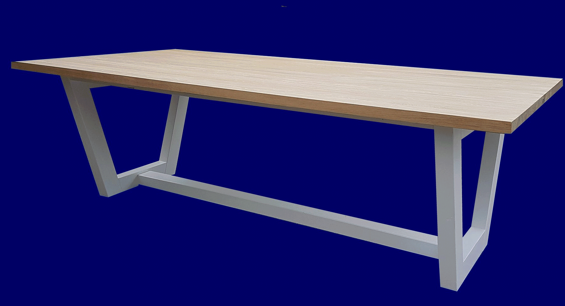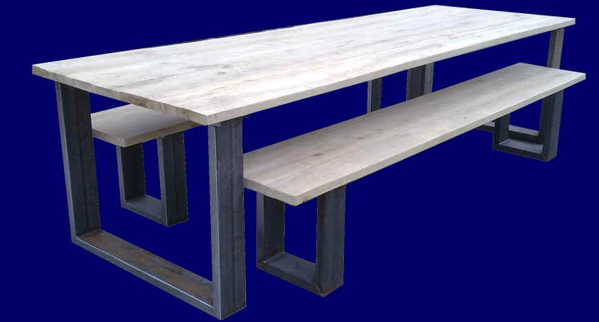 Eiken tafel met onderstel van staal